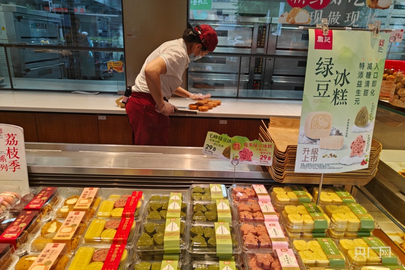 端午节将近,詹记推出了各种口味的绿豆糕(央广网记者 赵家慧摄)