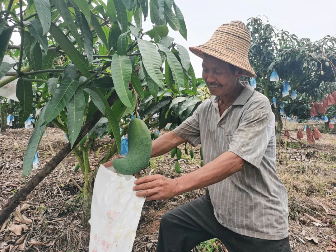 在果农蔡渊平家果园,他正忙着对芒果的成熟度进行检查,“今年受冷空气和降水的影响,芒果上市比去年推迟了10天左右。每年的芒果采摘季都是我们这里的雨季,如果连续下雨会影响芒果的质量,所以一旦达到了成熟度就要及时进行采摘销售。”蔡渊平介绍,六七月是果农一年中最忙的季节,从6月中旬开始,部分早熟品种如三年芒、圣德龙陆续开始成熟上市,6月下旬至7月,则是金煌芒、椰香、贵妃芒等集中上市的高峰期,辛苦管护了大半年,就为了这几天能卖个好价钱。
