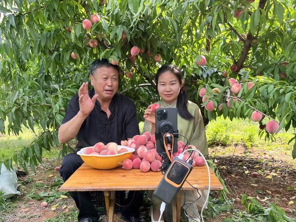 “各位朋友你们好,请看这是我们桐柏特产朱砂红桃,果肉肉质细嫩,口感清爽甘甜,皮薄核小,美容又养颜,好吃得很,欢迎大家购买品尝!”在桐柏县城郊乡方家寨村桃园里,村支部书记王顺利变身“主播”,在抖音直播间宣传推介朱砂红桃等本地特色农产品,吸引了不少屏幕前的消费者“种草”并下单。王顺利介绍,直播活动已经开展了10天,每天都有800单至1500单的销量,并且销售热度还在持续上涨,按照每单40元左右的均价计算,10天的销售额已达4万余元。