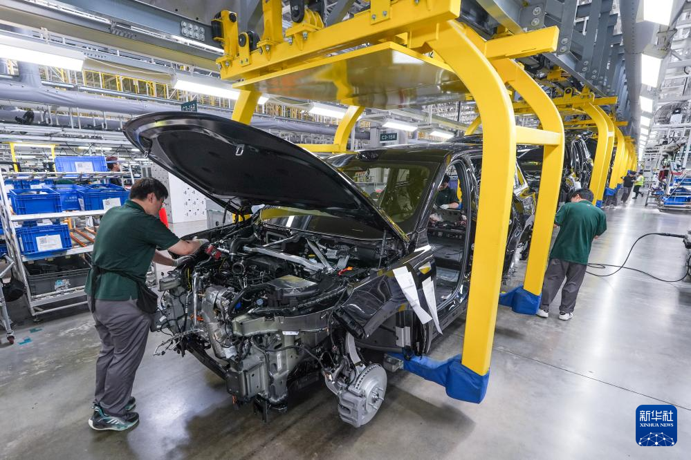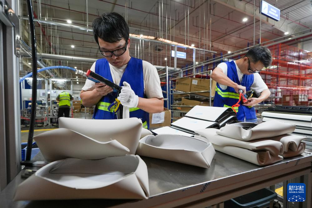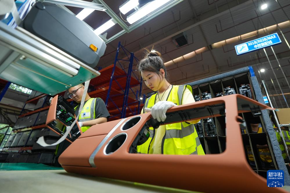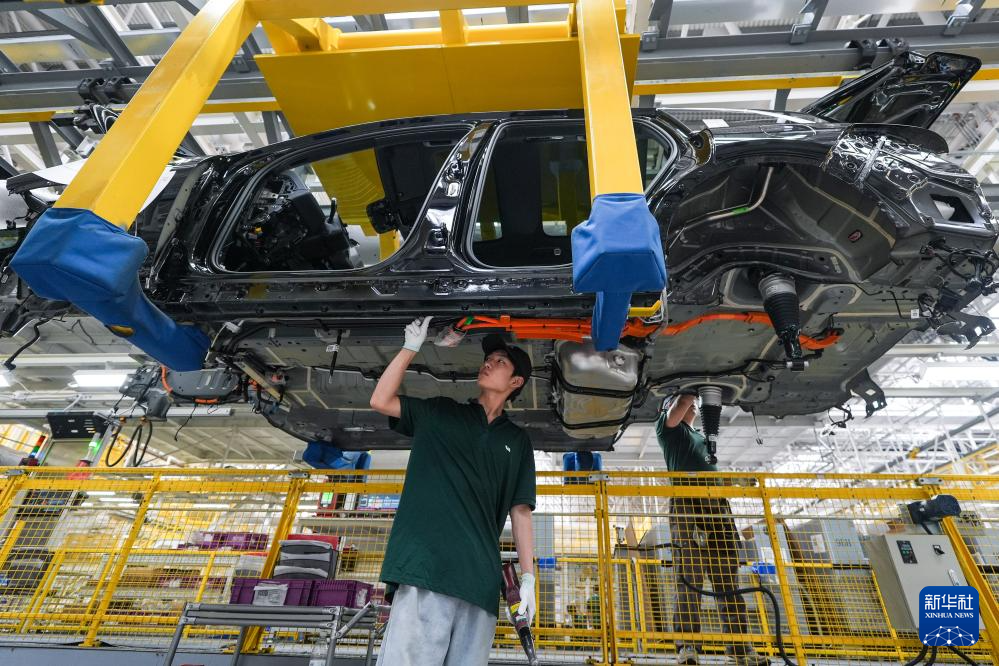 6月14日,工作人员在位于常州市武进区的江苏常州理想汽车智能制造基地总装车间工作。新华社记者 李博 摄