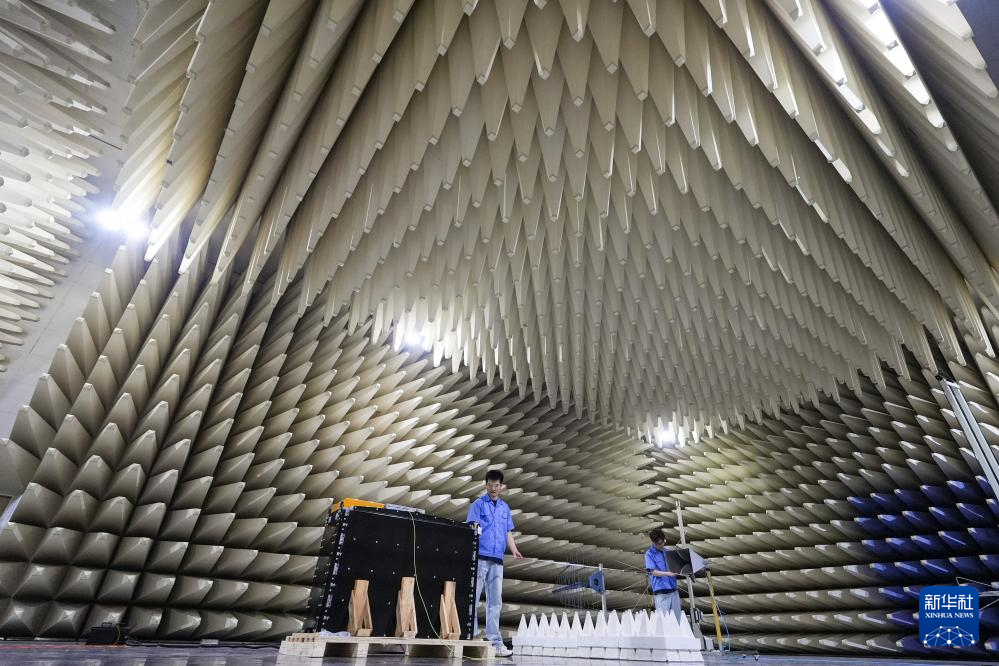 6月14日,在位于常州市武进区的新誉集团有限公司电磁兼容实验室,工作人员在进行设备调试。新华社记者 李博 摄