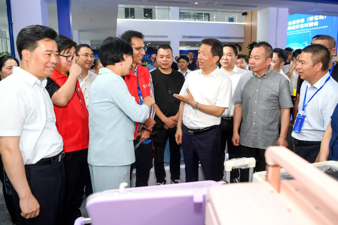▲会后,市委书记许忠建,市委副书记、市长黎春秋等与会领导嘉宾前往怀化国际陆港(跨境)电商产业园巡园。(以上照片均由怀化日报全媒体记者 杨智伟 摄)怀化国际陆港(跨境)电商产业园开园,同步启动跨境电商平台进市州(怀化站)、外商采购进怀化活动。市委书记许忠建宣布开园。市委副书记、市长黎春秋致辞,省商务厅党组成员、副厅长郭宁讲话,市委常委、副市长邹兴旺作园区及产业推介,副市长韩晓波主持。黎春秋在致辞中说,怀化是国家战略“双通道”的重要节点,是西部陆海新通道“13+2”省际协商合作机制成员之一。当前,怀化正深入学习贯彻习近平总书记考察湖南时的重要讲话和指示精神,锚定“三高四新”美好蓝图,深入实施“五新四城”战略,依托怀化国际陆港对接东盟的通道优势,大力支持电商企业海外布局、不断优化跨境资金结算服务,全力构建“5+10”现代化产业新体系,着力打造“低成本怀化”,怀化“国际种业之都”“国际箱包之都”初具雏形,蕴藏着广阔机遇与无限商机。怀化愿意与世界各国建立交流合作关系,欢迎更多外国企业来中国投资发展。希望电商产业园向“专”发力,以跨境电商助力外贸提质增效;向“深”拓展,以跨境电商打造数字经济样板;向“高”攀升,以跨境电商促进区域转型升级,助力全市外贸产业高质量发展。郭宁在讲话中说,怀化是历史悠久的天下福地,是风光秀丽的旅游胜地,更是地处枢纽的交通要地、欣欣向荣的开放高地。希望怀化依托得天独厚的资源禀赋和服务周全的营商环境,以怀化国际陆港(跨境)电商产业园为重要平台,聚焦东盟、非洲等重点地区,推动箱包、竹制品等产业以互联网赋能企业品牌,以跨境电商助力市场开拓,大力推动怀化制造走出国门。真诚期待企业家以此次活动为契机,觅商机、寻合作、谋发展、促共赢,深耕湖南、把握机遇、守正创新,共同推进跨境电商事业再上新台阶。巴基斯坦采购商代表哈菲兹·穆罕默德·阿赫桑 、阿里巴巴全球速卖通湖南区域负责人王琼、义乌中国小商品城大数据有限公司副总经理徐永赛、怀化享同实业董事长牟晓峰、麻阳蓝凤凰农业发展有限公司董事长雷华英先后发言。大家表示,怀化发展势头越来越好、营商环境越来越优,是投资兴业的热土,将依托怀化国际陆港(跨境)电商产业园,让产品插上“云翅膀”,与全球需求实现更好对接,助力怀化外贸提质增效。开园仪式上,美国、印度、阿富汗、巴基斯坦、阿联酋、沙特阿拉伯、孟加拉国、乌兹别克斯坦、巴林、肯尼亚、也门、约旦等国外采购商,湖南省跨境电商协会负责人,义乌中国小商品城大数据有限公司、杭州微蚁科技有限公司、Shopee、阿里巴巴全球速卖通、TEMU、通贵会展、思洋控股集团、卓臻电子等企业负责人,怀化市进出口企业、电商企业代表等参加。会后,与会领导嘉宾前往怀化国际陆港(跨境)电商产业园巡园。怀化国际陆港(跨境)电商产业园总体规划面积约36000平方米,共26层,一期面积约12000平方米。园区针对电商企业的需求专门设置有培训室、公共直播间、选品中心、录影棚、录音室等园区公共服务空间。园区首批入驻企业10家,其中厦门速盟科技、巨量千荚、巨量电商服务、麓帆传媒跨境电商企业4家,业务在亚马逊、速卖通、独立站等平台均有开展;国内电商企业卓效科技、小团团电商、聚猫电商、酷首电商、子畅电商、安迈电商6家,在抖音、拼多多、淘宝等平台开设有店铺。园区还正在与阿里速卖通、阿里国际站、菜鸟物流、抖音、义乌小商品城、京东国际、深圳前海数贸、深圳易达云等头部电商企业积极对接洽谈。