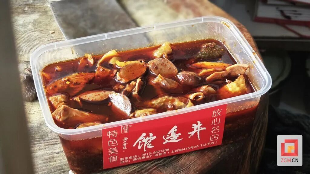 河街的另一条小巷里,有一家开了43年的井边馆(因早期开在古井边而得名),菜品主打麻辣鸡,老板张淑华年过七旬。每天凌晨4点,她就开始蒸鸡。这些鸡都是来自本县长山镇一带的“跑山鸡”。鸡经过蒸煮后,加蒸馏汤汁,再配以荣县本地产的辣椒、花椒、茶油、酱油、小葱等拌制而成的佐料,肉质鲜嫩、味厚香浓、麻辣爽口,是佐酒下饭的佳肴。麻辣鸡的佐料很关键。据了解,张淑华的佐料,都是她用自己酿制的酱油制作的。