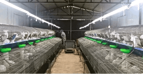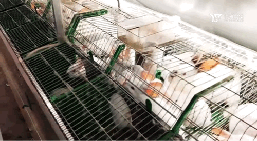 一行行兔笼整齐排列