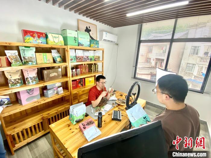 施昌海告诉中新网记者,寿宁生态环境良好,大面积土壤富含硒、锌元素,因此茶叶品质很高;直播间主打销售寿宁县域的高山茶和乌茶。