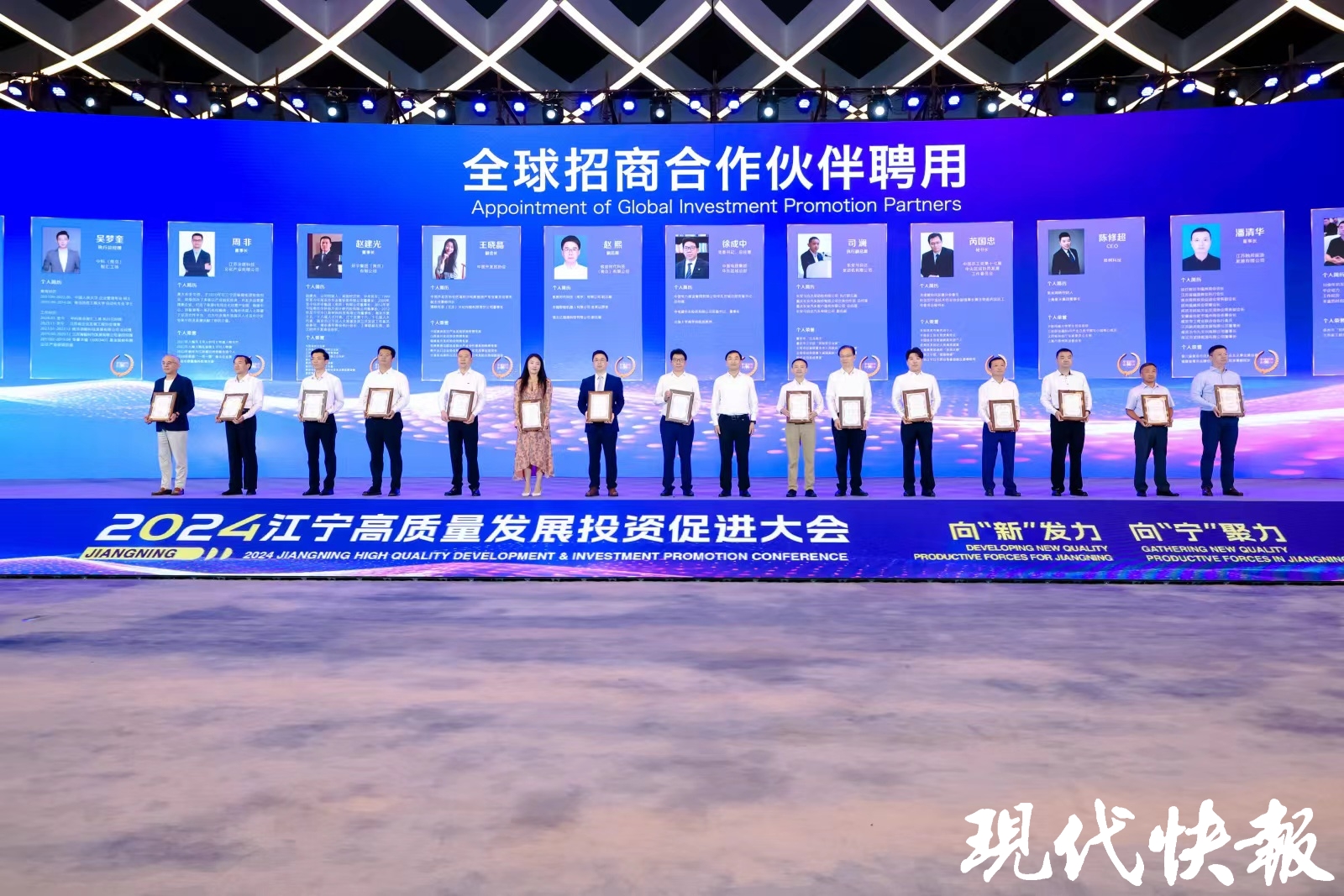 活动中,超千亿元99个项目签约,包括科技人才项目、新兴产业项目、文商旅项目、基金合作项目、未来产业项目等,为发展新质生产力“蓄势赋能”。同时,大会还聘请了30位全球招商合作伙伴,他们将深耕江宁,充分发挥资源广、人脉多的优势,通过举办专业论坛、开展专题推介、组织项目路演等多种方式,积极搭建交流平台、汇聚各类人才、链接全球资源,不断扩大企业“朋友圈”,构建招商“共同体”,掀起“以商招商”热潮。