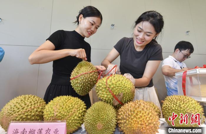 中新网海南保亭6月21日电(记者王晓斌)海南保亭一批榴莲树迎来丰收时,6月21日,“榴在保亭·莲动世界”2024年海南“保亭榴莲”品牌宣传系列活动在保亭三道镇举行,主办方通过现场主题宣讲、基地实地探访等形式,向各界展示保亭作为国产榴莲主要产地的地位与贡献。