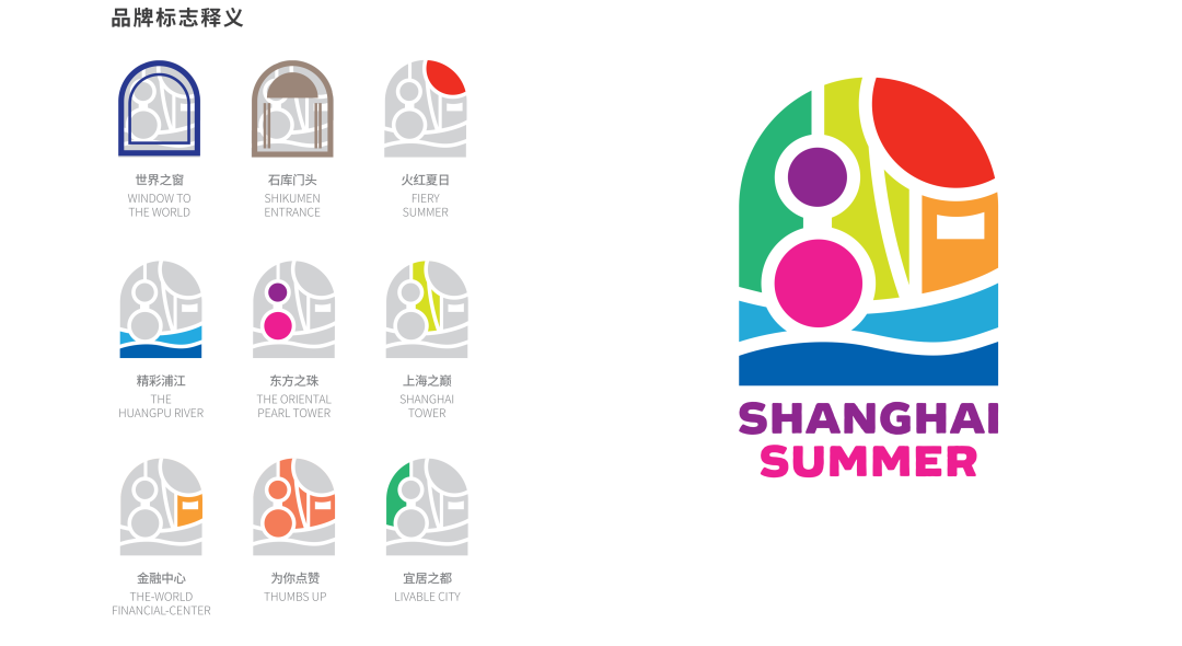 “上海之夏”国际消费季是上海将于今年7月至10月推出的城市夏季促消费活动新IP。此次活动推出了“上海之夏”国际消费季主标识。其设计理念融合了上海的城市元素,多元图形组成了如同飞机舷窗般的轮廓,寓意欢迎旅客来到上海。缤纷的色彩代表上海的夏日活力。透过舷窗,艳阳高照,随着一江一河涌来的是上海地标天际线,共同形成一个点赞的手势。此番美景恰如正在City Walk的游客从石库门中望出,感受着“上海之夏”的魅力与城市底蕴。