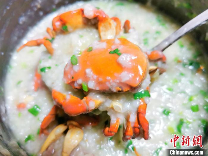 “用山螃蟹煲粥,只需将腹部的脐掰扯掉,掀开蟹盖,摘除鳃部,然后用水冲洗干净。蟹钳大的,要用刀将其拍裂。”台山市民黄先生称,白粥即将煲熟时,将收拾好的山螃蟹和姜片一起放入,煮几分钟即可,食用前可按个人口味加芫荽、葱花、胡椒粉等配料。