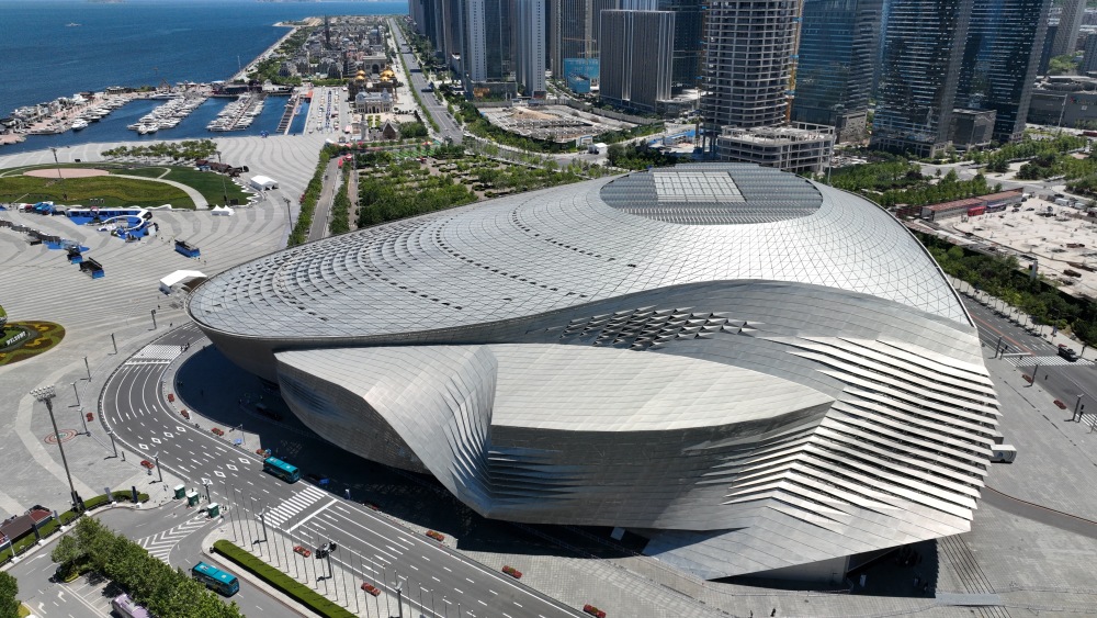 6月24日拍摄的夏季达沃斯论坛主会场大连国际会议中心(无人机照片)。新华社记者 杨青 摄