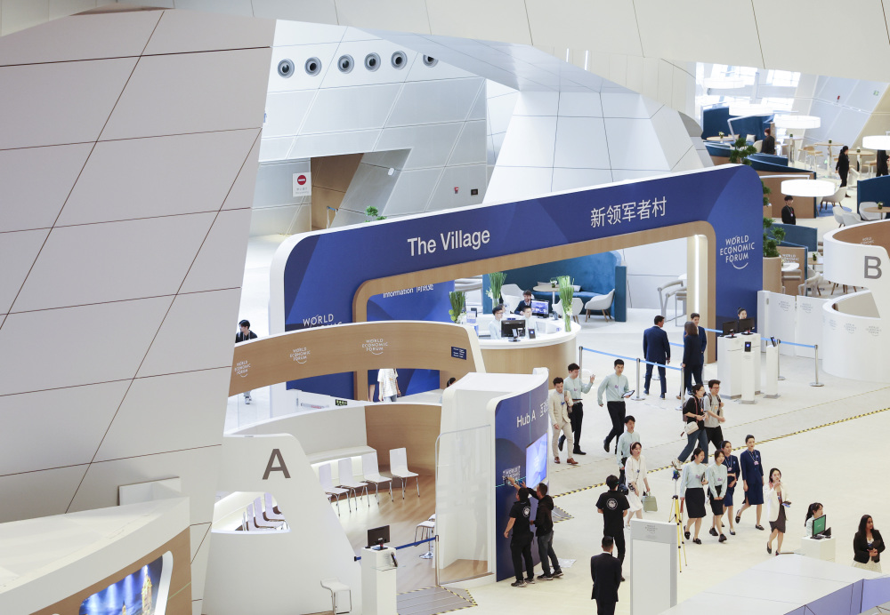 6月24日在夏季达沃斯论坛主会场大连国际会议中心拍摄的新领军者村。新华社记者 李钢 摄