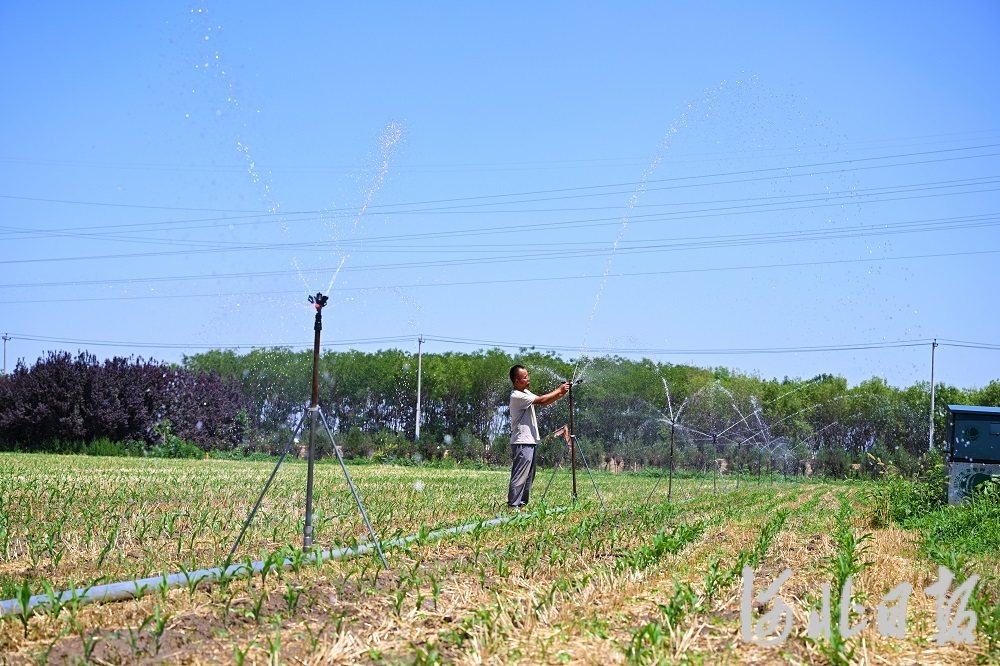“三夏”时节,烈日炎炎。6月27日,在邯郸市永年区曹八汪村的玉米地里,玉米苗已经长到了近20厘米高。在这块地里,邯郸市永年区博远粮油贸易有限公司的田间管理员张文绪忙着给玉米苗浇水,缓解当前的旱情。今年麦收之后,天气持续高温干热,农田土壤墒情不足,浇地成了张文绪的心头大事。