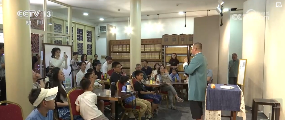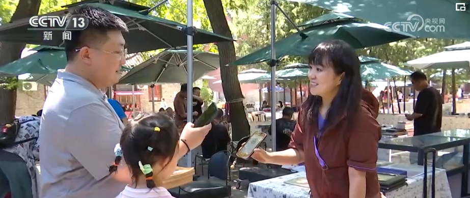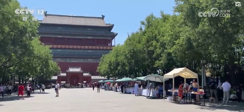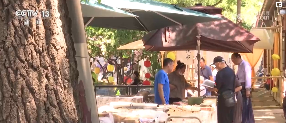 在钟鼓楼前,每个月的月初都会举办“旧书新知 钟鼓书韵”旧书文化市集,50余个旧书摊位展出数百部经典小人书。小朋友还能体验连环画填色、木板拓印,创作出独一无二的连环画作品。