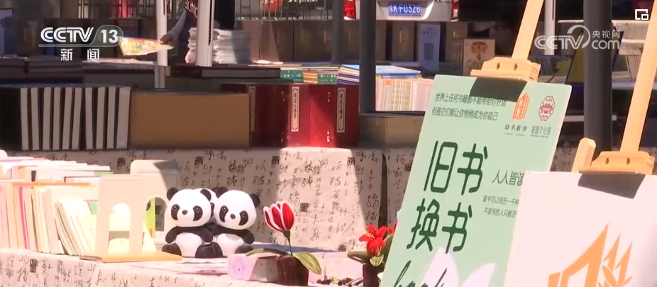 书香文创、围炉煮茶、评书专场……各项传统现代融合的文娱体验,让读者们在古色古香的报国寺内,体验到的不只是逛书摊的乐趣。书市制定了一种可持续的“换书”机制,加速了旧书流动,读者可以用带来的旧书换鲜花、换咖啡。