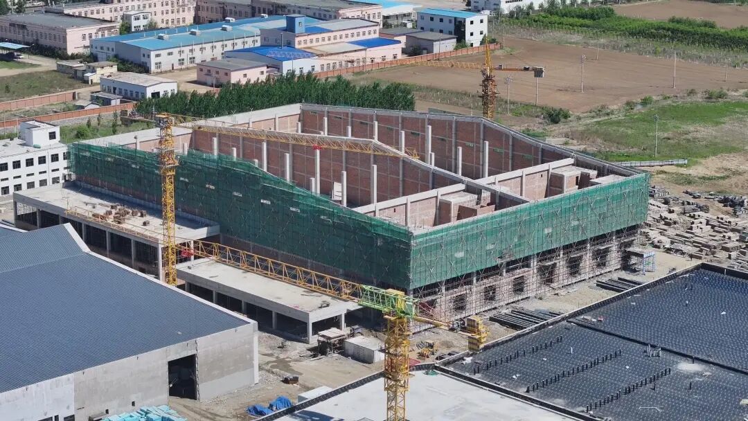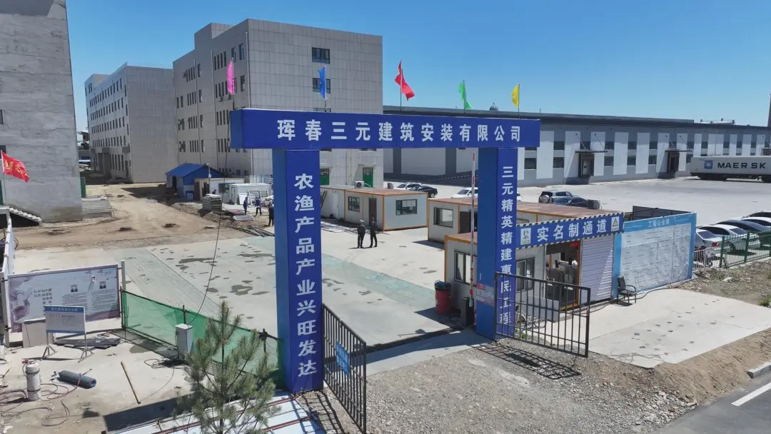 珲春国际合作示范区天成开发建设有限公司项目负责人张弘博:“这个项目主要包含两栋主要的建筑单体,一栋是加工车间及冷库,另一栋是综合楼。目前,综合楼部分已经完成,加工车间及冷库正在进行设备安装及室内装修收尾工作。”