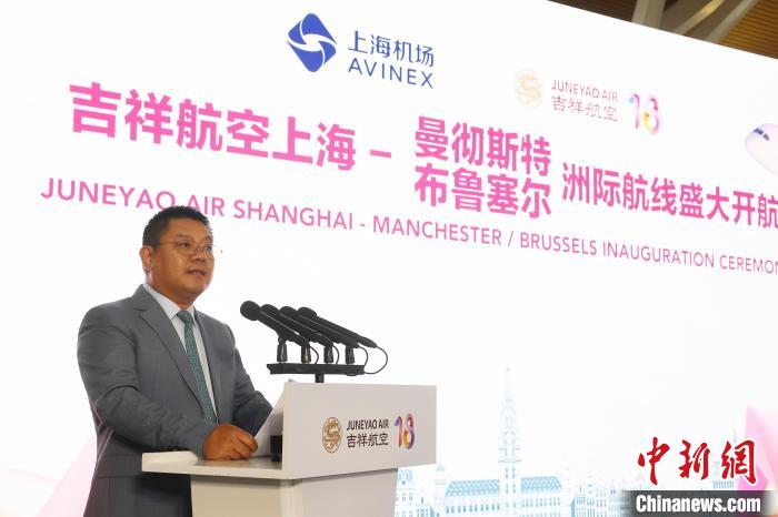 吉祥航空在浦东国际机场举行上海至曼彻斯特直飞航线首航仪式。 中新网记者殷立勤摄
