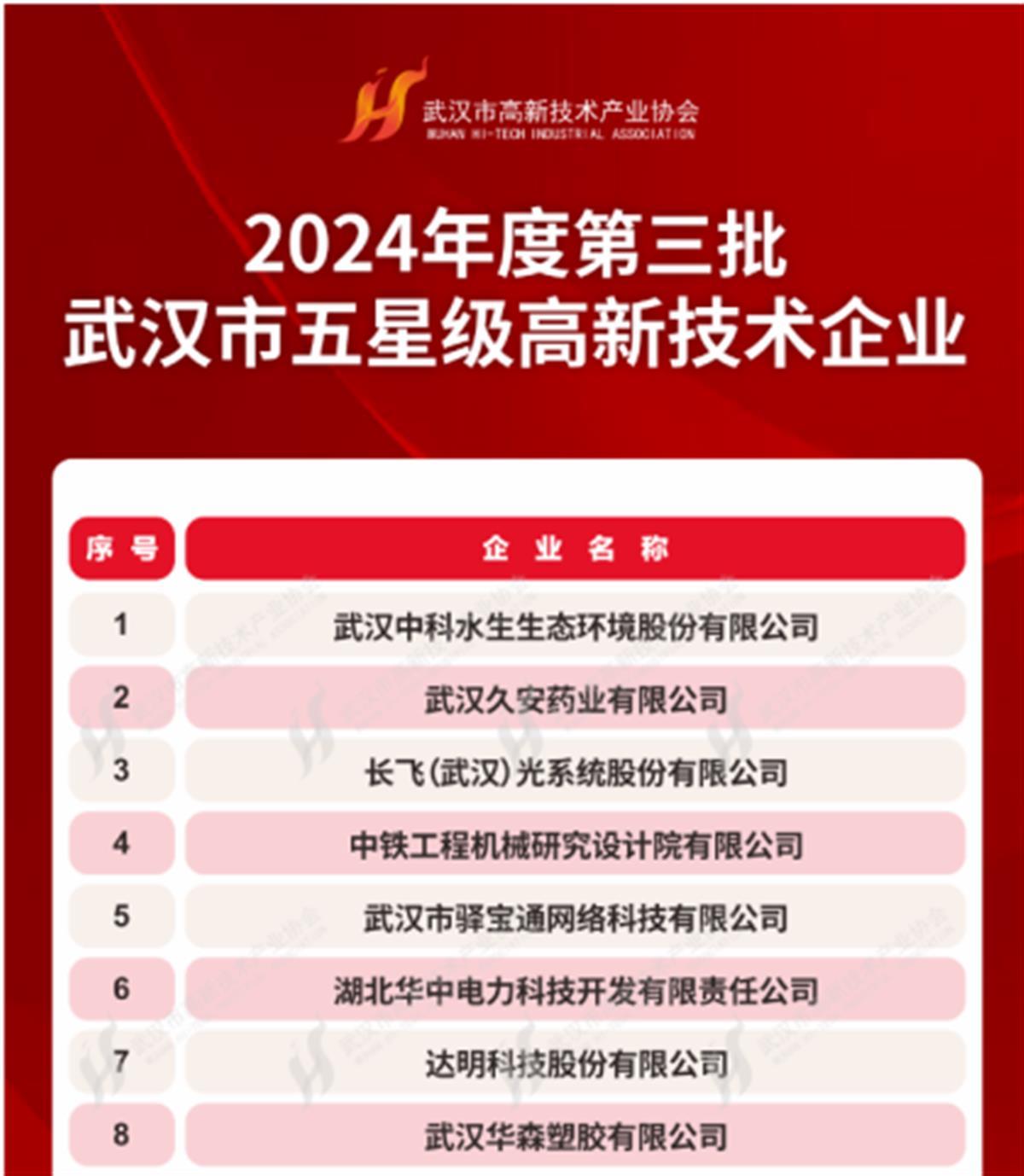 近日,武汉市第三批五星级高新技术企业名单公布,经企业申报、武汉市高新技术产业协会评比,湖北生态所属武汉中科水生生态环境股份有限公司入选。