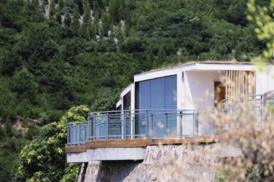 屋外建筑特色彰显,屋内设施合理舒适。轻轻拉开白色纱幔,全景落地玻璃窗外,是青山隐隐,白云悠悠。这时候,煮一盏养生草茶,赏一场动人电影,享受怡悦的私密时光,放下平常的琐事烦忧,对游人来说,不失为很好的选择。