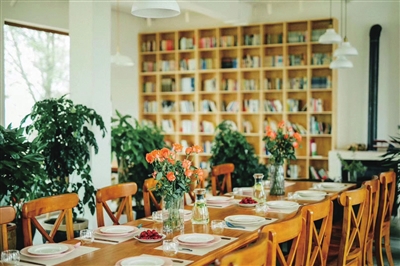 几念山居可谓我市最讲究细节的民宿,一楼是开放的餐读空间,吧台、餐台、书墙,功能区齐备;绿植、干花、桌椅,错落有序。楼下几孔窑洞,名之以锦葵、鸢尾、朝颜、荼蘼、瑰夏、蓝草,既是香料、花草,又是不同的设计风格。旧窑洞往外延伸了一米有余,给地暖、除湿、上下水等现代设备留出余裕;同时,大开的玻璃门窗引入阳光,照得白色的床单愈发洁白。