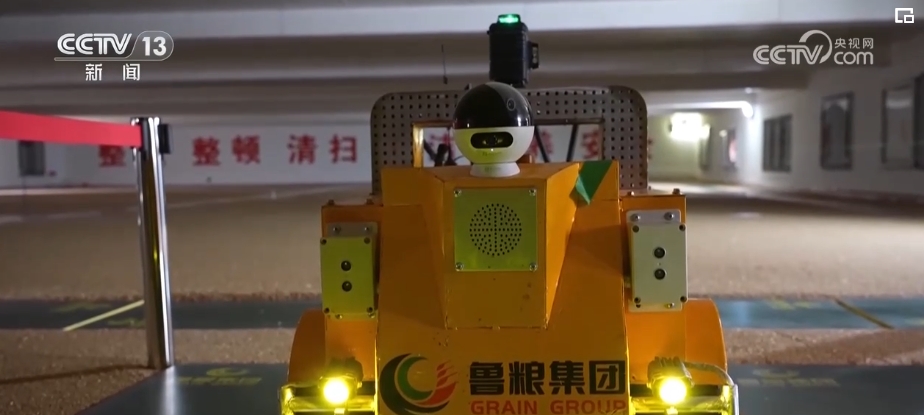 这个摄像头就是粮库里边的“火眼金睛”,它还有带有扫描功能的数字传感器,可以自动识别巡查路线。这个粮仓里的机器“小黄牛”,在铺有走道板的粮面上不但能前行、倒行,还能花式“整活儿”,来个360度大旋转。