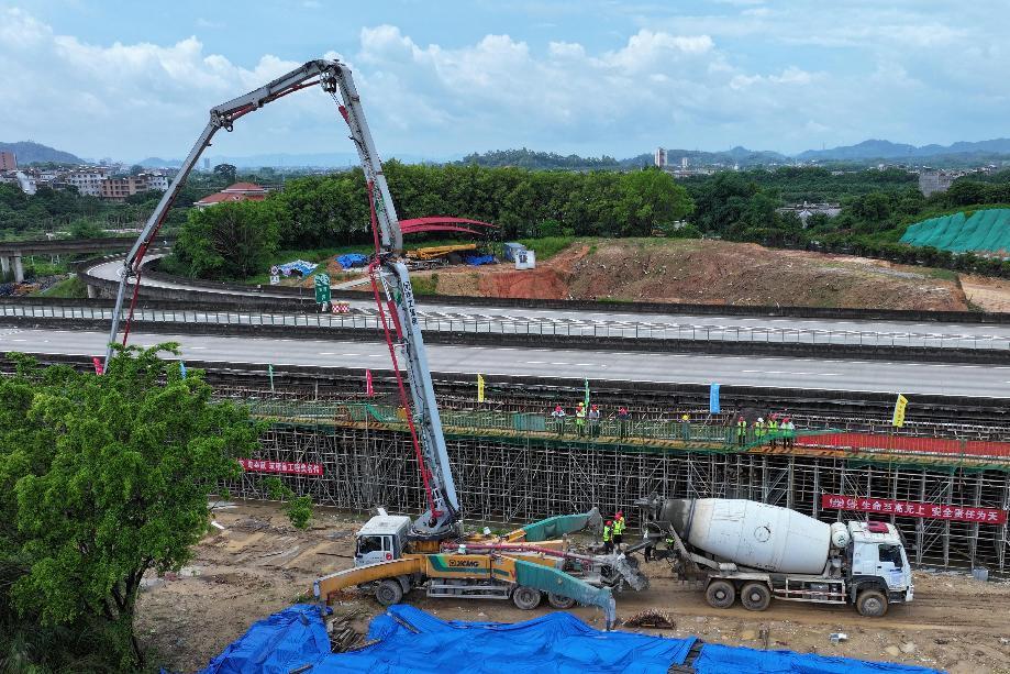 7月2日,由中铁四局承建的汕(头)梅(州)高速改扩建TJ1标玉湖互通潭岭跨线桥首联连续梁顺利浇筑。