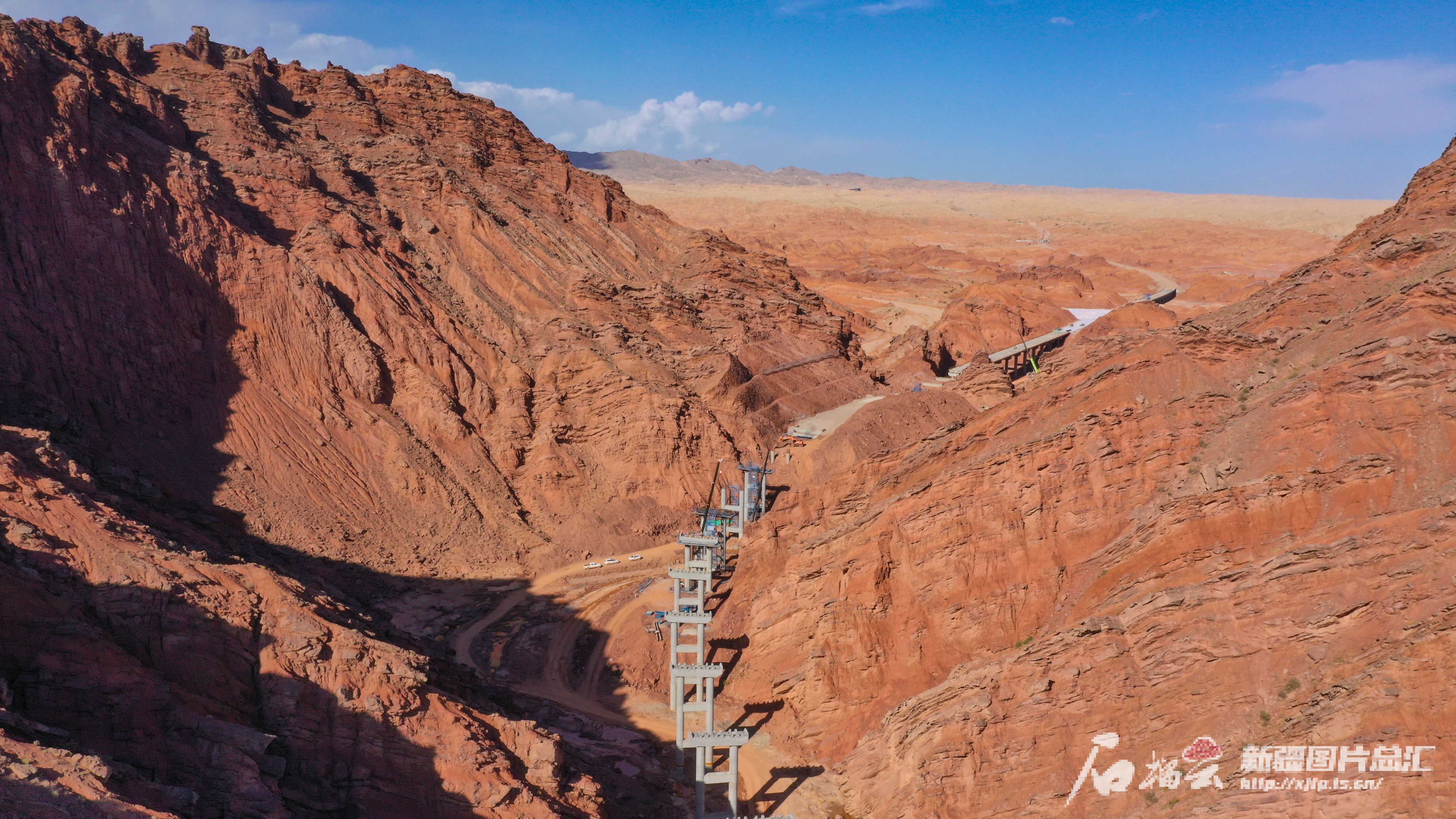 7月3日,G219线昭温公路温宿县托木尔大峡谷内施工现场。天山网-新疆日报记者豆兴军摄
