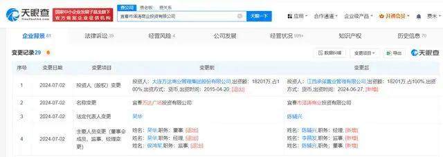 此外,万达还转让宜春万达广场投资公司。日前,宜春万达广场投资有限公司发生工商变更,原全资股东大连万达商业管理集团股份有限公司退出,新增江西承泽置业管理有限公司为股东,并全资持股,同时,企业名称变更为宜春市泽涛商业投资有限公司,法定代表人及主要人员也均发生变更。