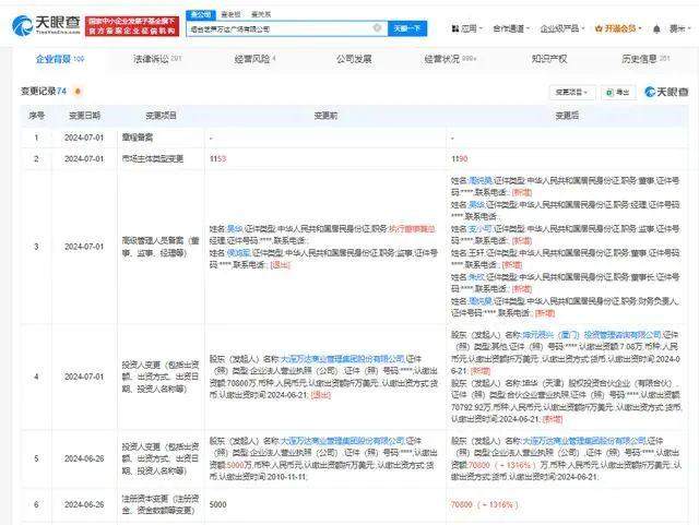 烟台芝罘万达广场有限公司发生工商变更,原全资股东万达商管退出,新增坤华(天津)股权投资合伙企业(有限合伙)、坤元辰兴(厦门)投资管理咨询有限公司为股东,分别持股约99.99%、0.01%,同时多位主要人员发生变更。