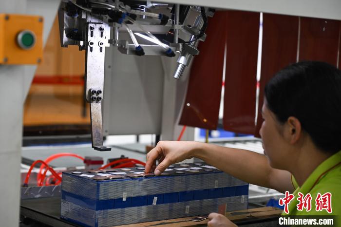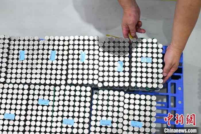 工人在准备焊接电池。据悉,动力电池退役时还有剩余储电能力,规范处理后可梯次利用。近年来,重庆市潼南区围绕废旧动力电池梯次利用、报废汽车拆解和汽车零部件再制造等业态,加快推进汽车后市场产业布局,全力打造中国第一汽车后市场基地。 中新社记者何蓬磊摄