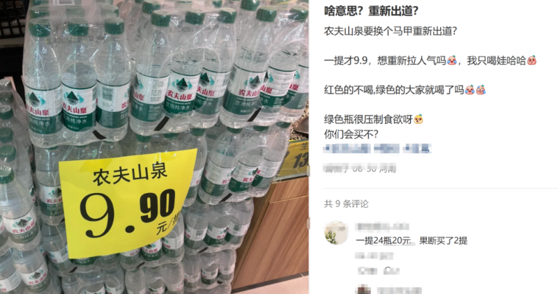 据21世纪经济报道记者此前消息,“绿装农夫山泉”刚上线立即引发了广大网友热议:农夫山泉此举是否意在对华润饮料,尤其是怡宝发起正面宣战?