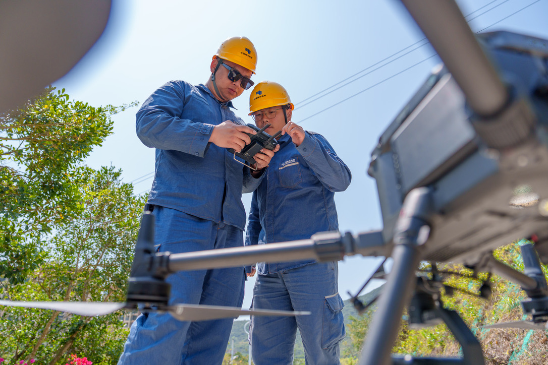 深圳供电局工作人员对线路进行特巡。(黄海鹏摄)