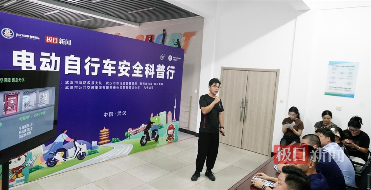 7月11日,由武汉市消防救援支队、武汉市市场监督管理局、楚天都市报极目新闻联合主办,武汉市公共交通集团有限责任公司第五营运公司、九号公司协办的“电动自行车安全科普行”系列活动,走进武汉关山大道公交场站,为全体公交职工科普电动自行车安全、公交车安全逃生等相关知识。