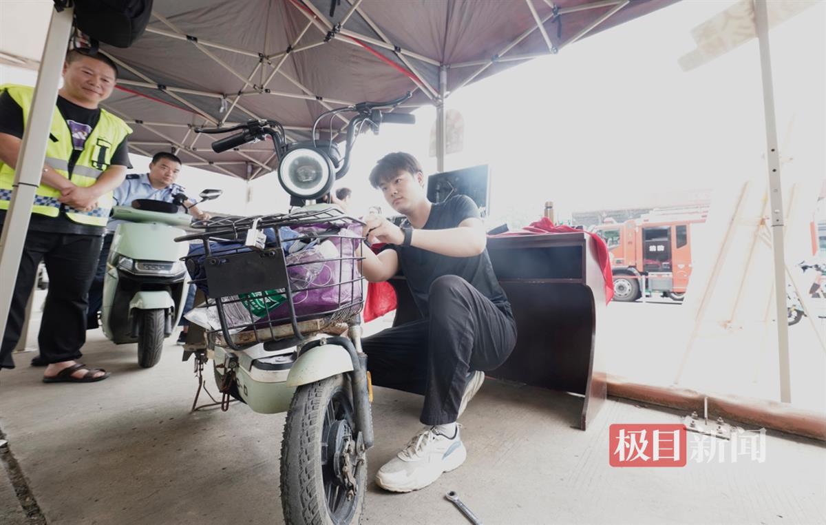 九号公司工作人员则为公交司机们免费提供电动自行车风险排查和洗车服务。在电动自行车安全维护区,大家纷纷推来自己的“小电驴”来个免费“体检”。