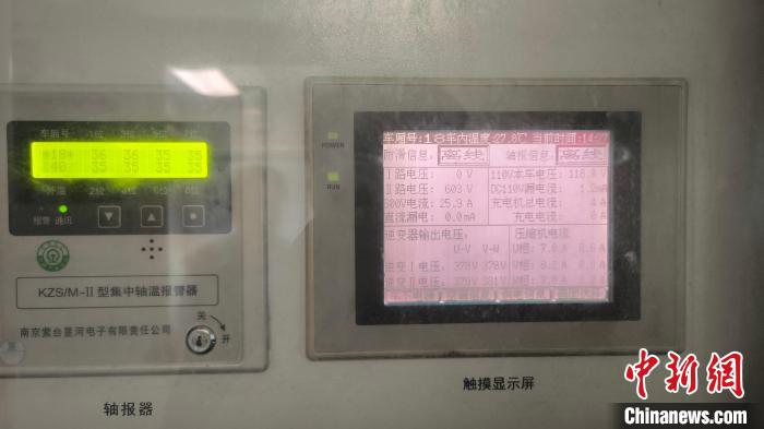 7月11日,首批移动储能电站在海南铁路跨海列车上线使用。图为跨海列车在解编作业时的车厢温度显示为27.8℃。 中新网 记者 林士杰 摄