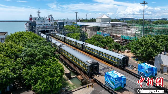 7月11日,首批移动储能电站在海南铁路跨海列车上线使用。图为移动储能电站参与列车过海编组作业过程。蔡晶 摄