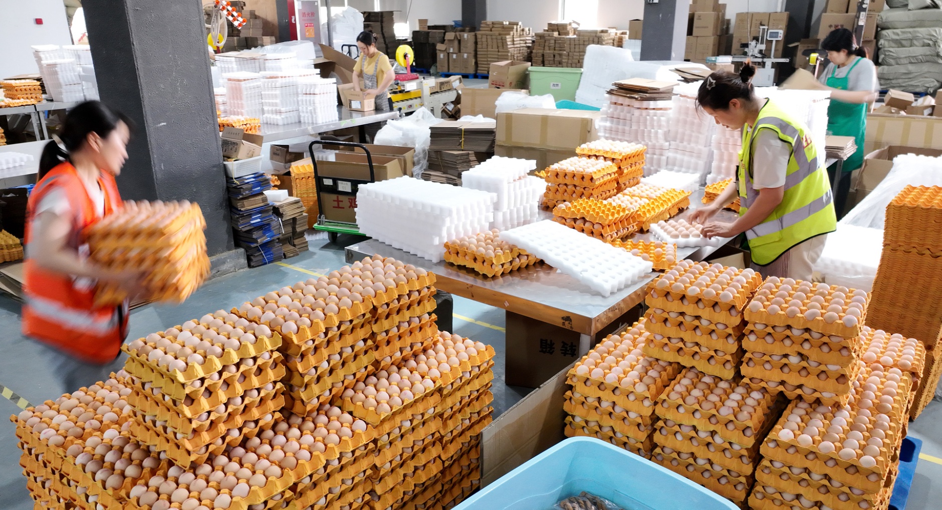 安徽阜阳:员工在“田园云仓”生产线上分拣农副产品