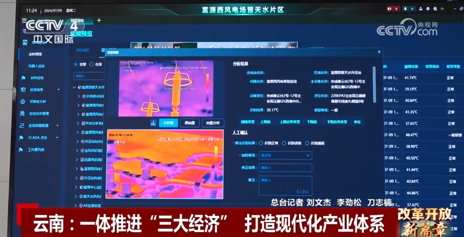 机器人24小时不间断来回穿梭巡检,每6秒就将画面、数据传回到平台上,在“数字孪生平台+超级算力”智慧风电场系统逐步完善下,这里的运维效率提高了60%以上,全年发电量已经达到19亿千瓦时。云南的面积虽然只占全国的4%左右,但却蕴藏了全国约20%的绿色能源,2023年电力装机突破1.3亿千瓦,绿色能源装机占比近90%,30多年来西电东送电量超1.5万亿千瓦时,居全国第一。
