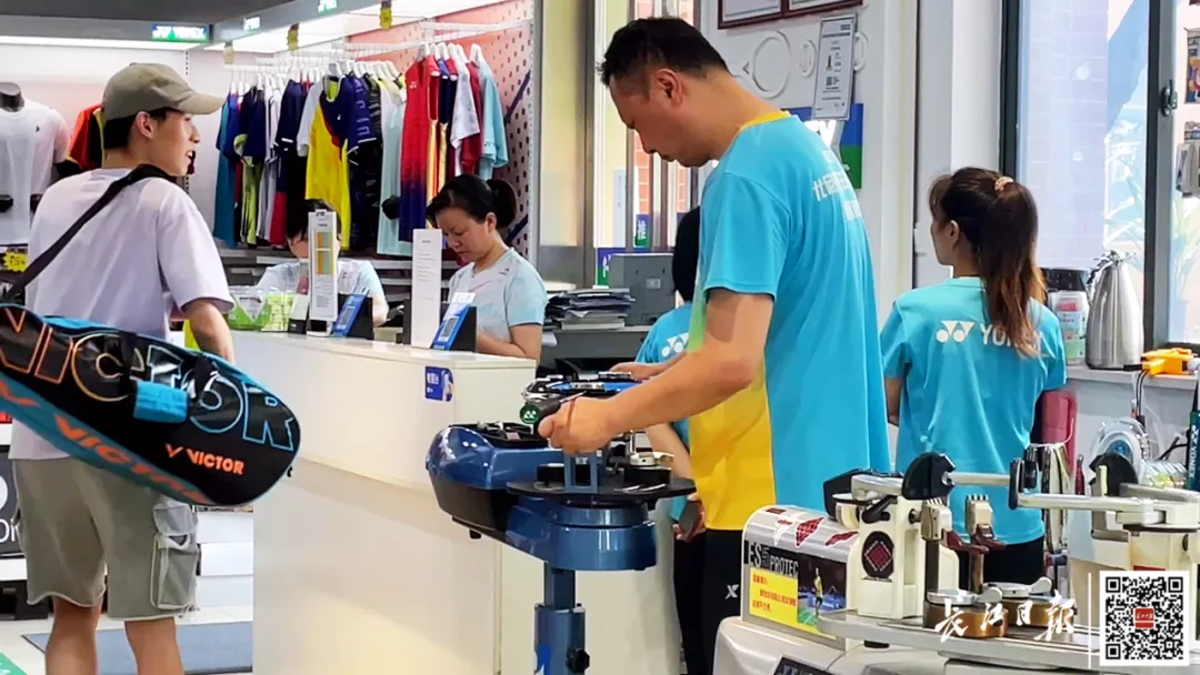 位于硚口崇仁路上的“仟湖体育”主营羽毛球用品近20年。7月12日,面对前来购买羽毛球的球友,店员夏天不时劝告顾客:“大家少买一点,不要囤球!把买球机会分给更多人!”