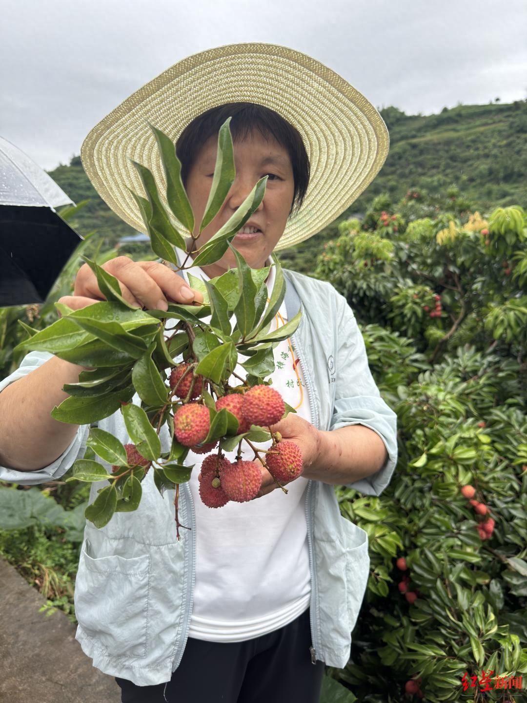 “这株荔枝名叫黛绿,产量300多斤,最低卖80元/公斤,最高卖140元/公斤,被誉为荔枝中的爱马仕。”7月14日,冒着淅淅沥沥的小雨,四川宜宾樟海镇红荔社区村民张遥英告诉红星新闻,有着“北半球最晚熟”之称的樟海大塔荔枝迎来丰产季,她家“最贵”的一棵树,产值超过1.2万元。