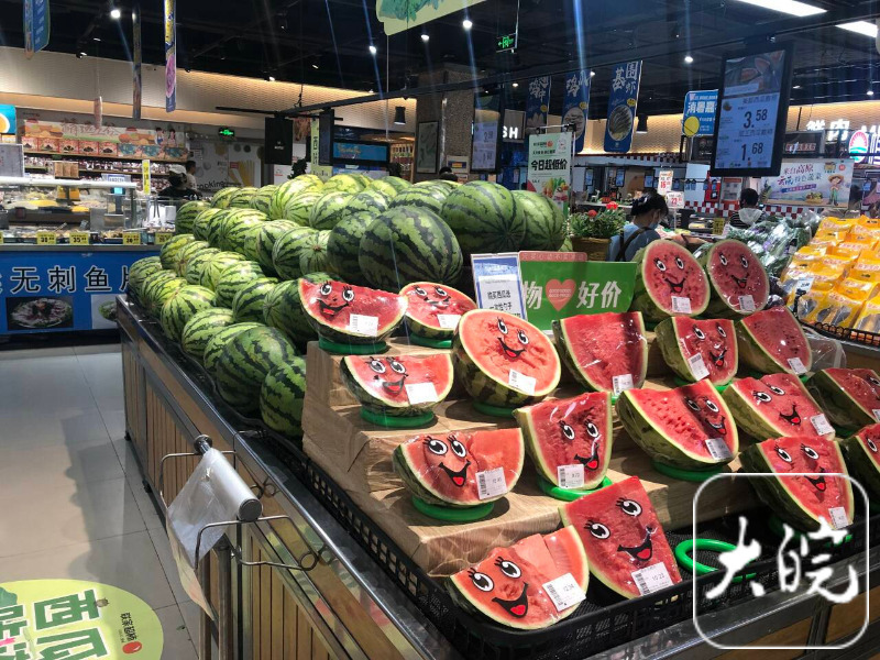 在望江西路上的一家大型超市内,在水果销售区,众多西瓜被摆在“C位”,品种和价格不一。现场的售价牌显示,产地为宁夏的美都西瓜3.58元/斤,产地为辽宁的甜王西瓜1.68元/斤。除此之外,产地为新疆的硒砂瓜散称价格为2.18元/斤,最贵的当属产自宁夏的甘美4K西瓜,卖到6.58元/斤。现场工作人员称,近段时间,西瓜价格虽上涨,但卖得还好,有些西瓜较大,顾客可以买半个或四分之一。