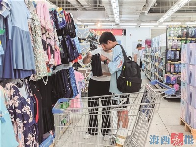 记者走访厦门多家商场门店,发现不少门店也都推出了与防晒相关的服饰、配饰等。在厦门沃尔玛购物广场(SM城市广场店)的防晒产品专柜上,防晒产品琳琅满目,超市服装区也有防晒衣、防晒帽等供市民选购。