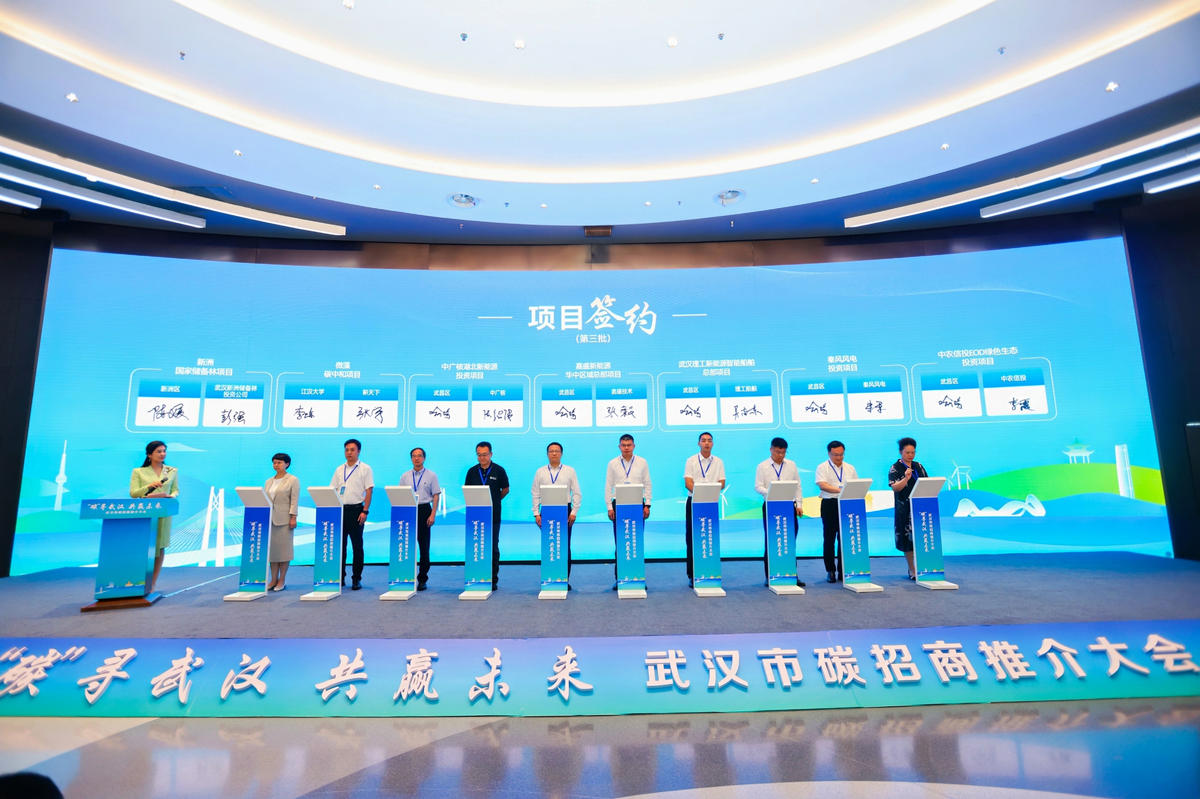 当天,以“‘碳’寻武汉,共赢未来”为主题的武汉市碳招商推介大会召开。这是全国首次以“碳”为主题开展的招商活动,会议聚焦双碳技术、新质生产力、环境治理等多个领域,包括微藻碳中和在内的50个项目集中签约,签约总金额达344.11亿元。