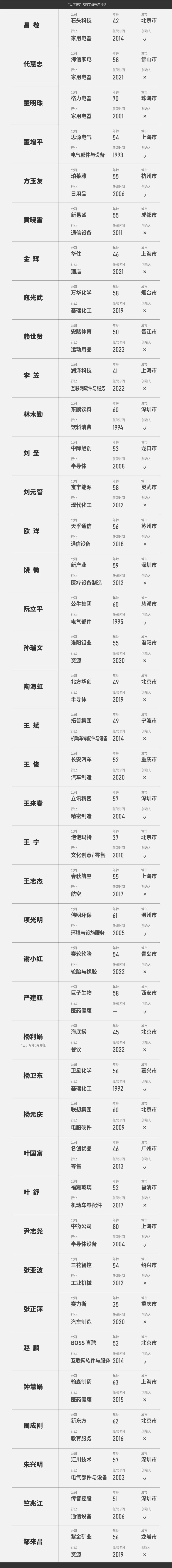 在连续上榜者中,新能源、半导体相关产业一直是最佳CEO的高产领域。但今年榜单的有趣现象是消费类公司CEO的占比有了更显著提升,这主要归功于一批耐用消费品公司CEO的强势回归。