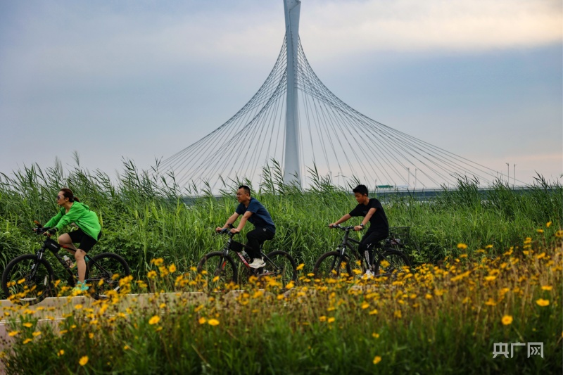 央广网石家庄7月23日消息(记者王伟倩)7月23日清晨,伴随着一缕清凉的微风,在河北省石家庄市环城绿道上,众多骑行爱好者结伴骑行,体验环城绿道,打卡沿途优美的自然城市风光。