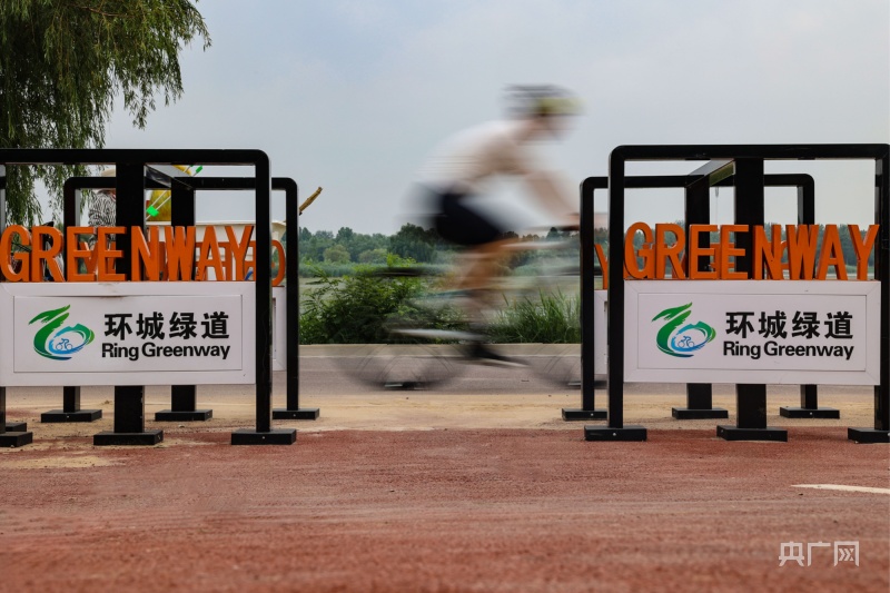 骑行爱好者在环城绿道北线骑行(央广网记者王伟倩摄)