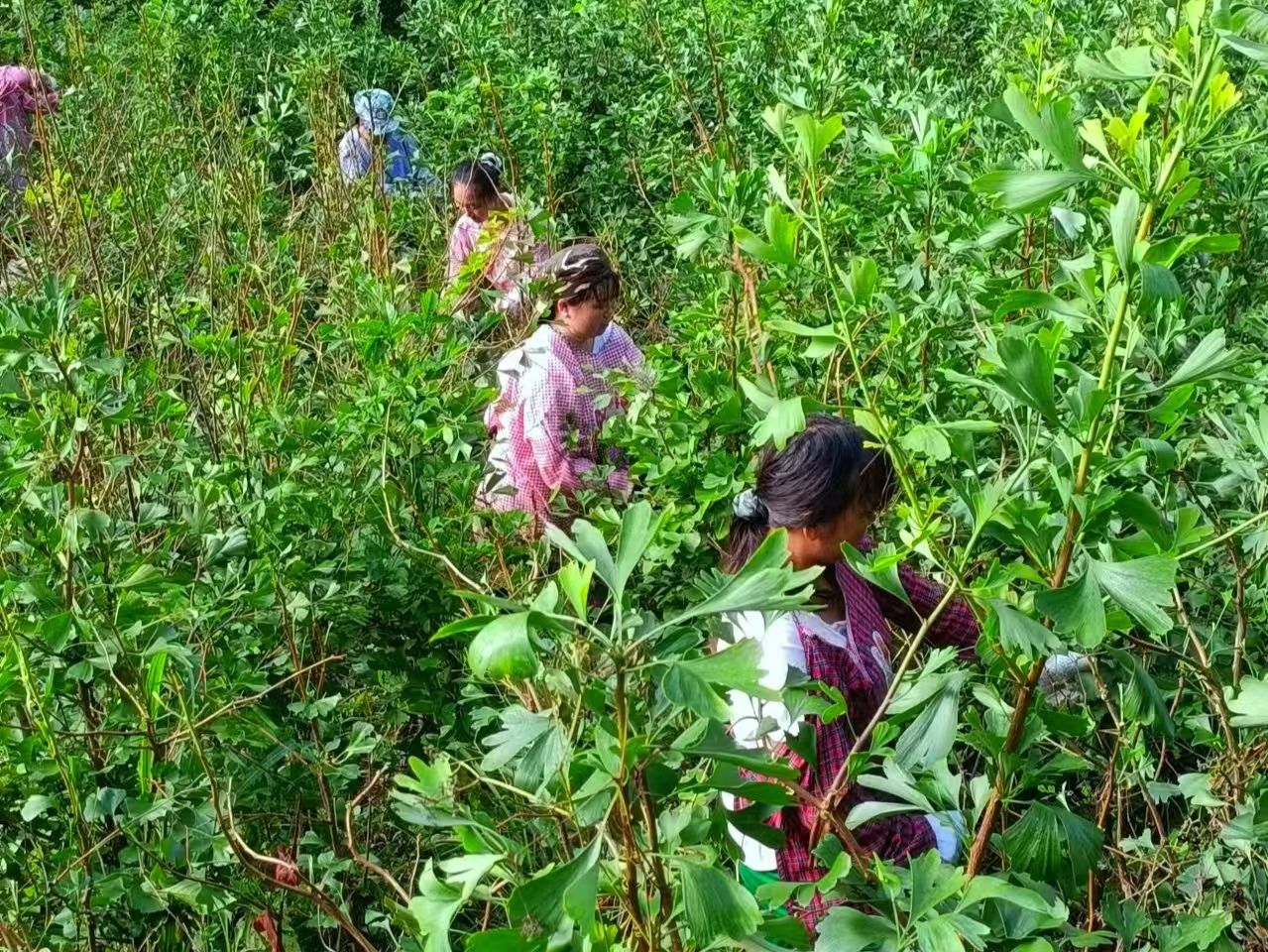 炎炎夏日,正是药用矮化银杏叶丰收的季节。在湖北十堰房县大木厂镇安羊沟村的银杏基地内,数十位村民正忙碌地采摘着银杏叶,空气中弥漫着丰收的喜悦。