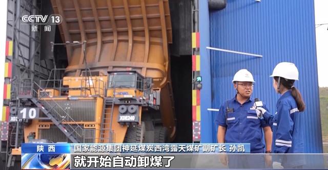 国家能源集团神延煤炭西湾露天煤矿副矿长 孙凯:当无人矿卡识别到绿灯,就开始自动卸煤了。然后进入自动破碎、皮带运转、智能筛分。在出厂前最后一步,我们还采用了智能无人装车系统,通过雷达扫描,就能精确计算出货箱容积,并且引导卡车精准停车,还能自动开闸装车。不到一分钟就能装满一辆卡车。