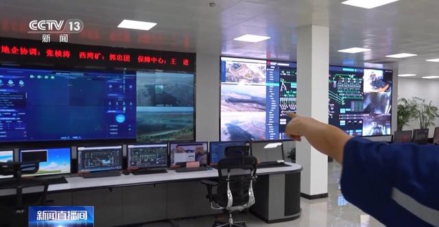 采煤场智能的背后,其实是靠的一颗“智慧大脑”来统一调度。走进生产指挥中心,记者看到,3块大屏幕上实时显示着采、装、运、卸等各个环节的画面,只需要2名调度员,就能指挥全流程作业。