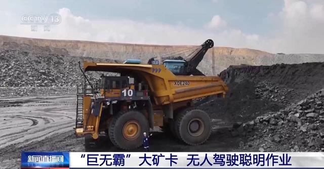 总台央视记者 张丛婧:我其实坐的是一辆无人驾驶的重型矿卡,它可以自己在矿区里穿梭。屏幕上显示的是它实时的行驶路径,能看到当前路况还挺复杂的,障碍物比较多,但它可以智能识别、平稳行进。