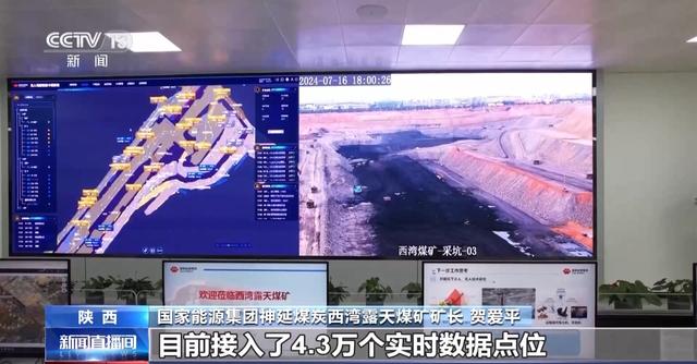 国家能源集团神延煤炭西湾露天煤矿矿长 贺爱平:我们采用了5G、大数据、人工智能,建成无人驾驶、边坡监测等19个智能化系统,目前接入4.3万个实时数据点位,生产效率提高了20%。